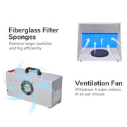 Airbrush Paint Booth with Powerful Fan, Fiberglass Filter Sponges and Revolvable Turn Table!! Perfect to filtrate paint fog and remove larger particles, especially good for the model builder or designer.
