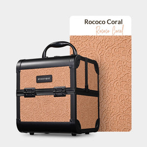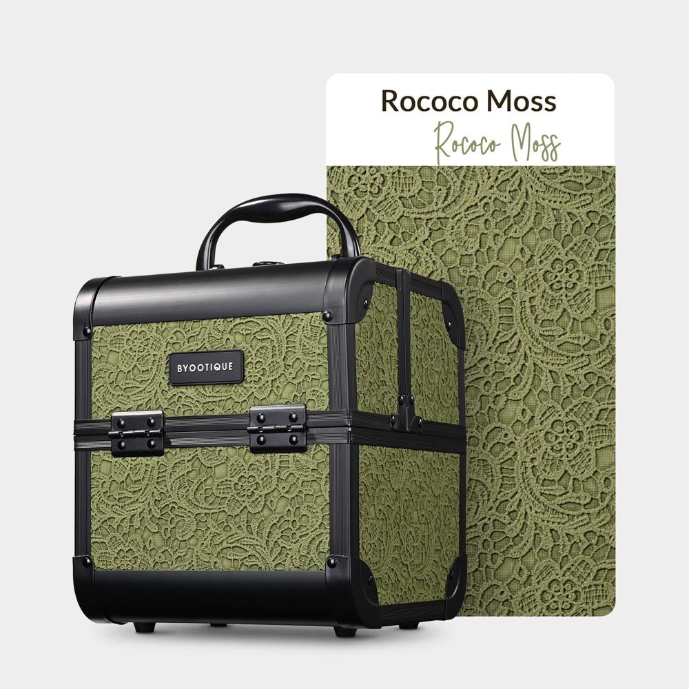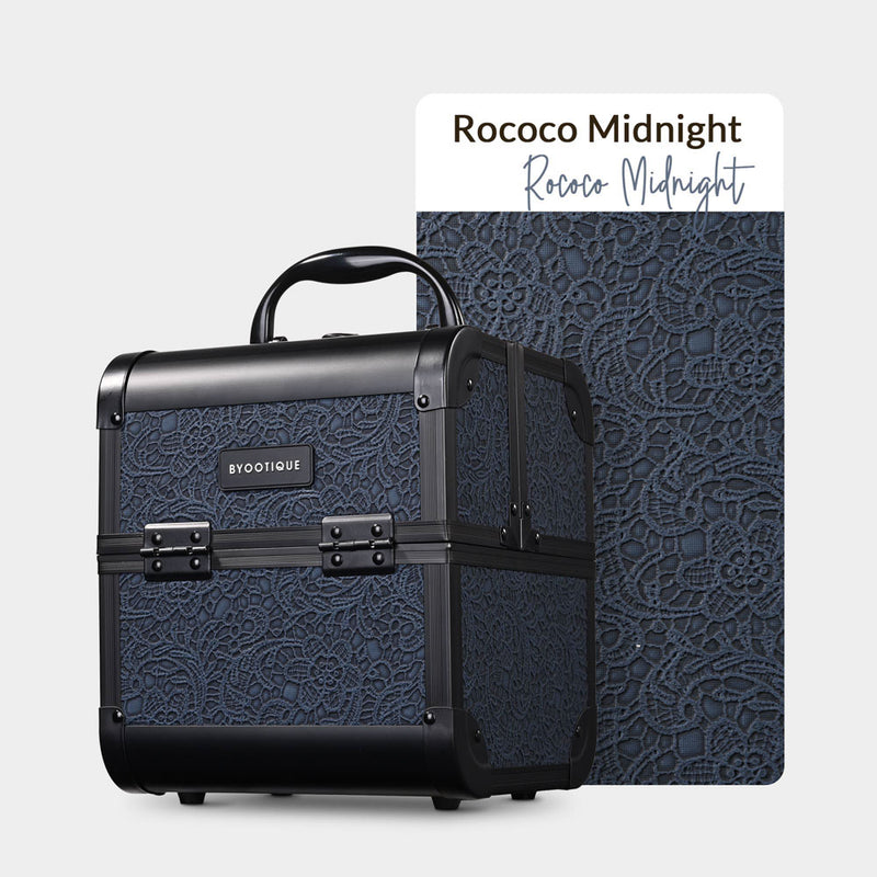 Organize and transport your make-up effortlessly with Byootique Rococo Cosmetic Case with mirror. Its delicate Rococo embossed pattern and cube design for graceful and elegant appearance. With 2 extendable trays and a built-in mirror, this compact case makes it easy to access and apply your makeup on the go. It's also perfect as a sleek and stylish gift for friends.