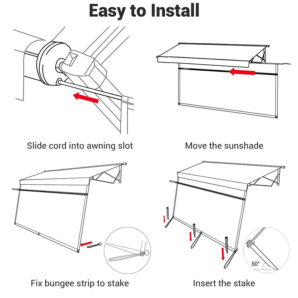 6x10 ft RV Awning Shade features UV protection to block 85% sun rays and lower the temperature, which provides you a cozier shade and privacy for camping and road trips.