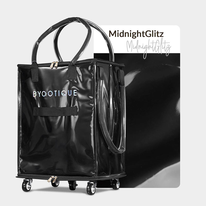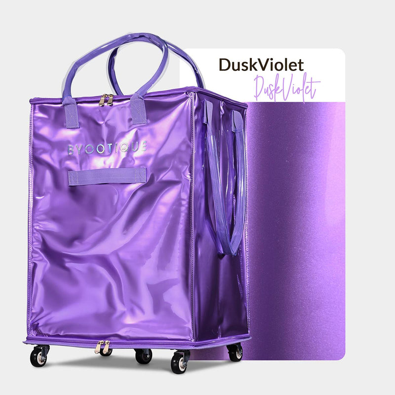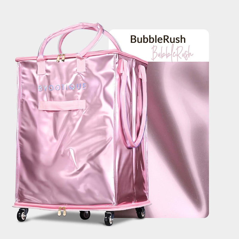 Byootique Rolling Tote Bag features a smooth-rolling 5-caster design and padded handles to effortlessly transport your essentials. With a convenient foldable design, this stylish and durable bag is suitable for shopping, event setups, and business travel.