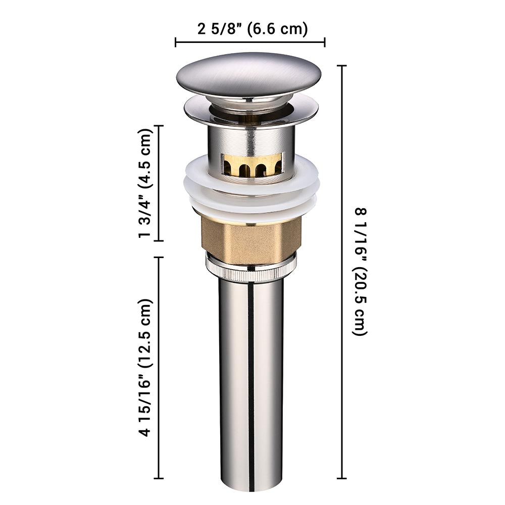 • Durable & Safe: Stainless steel body w/brushed nickel coating, pop-up drain w/strainer