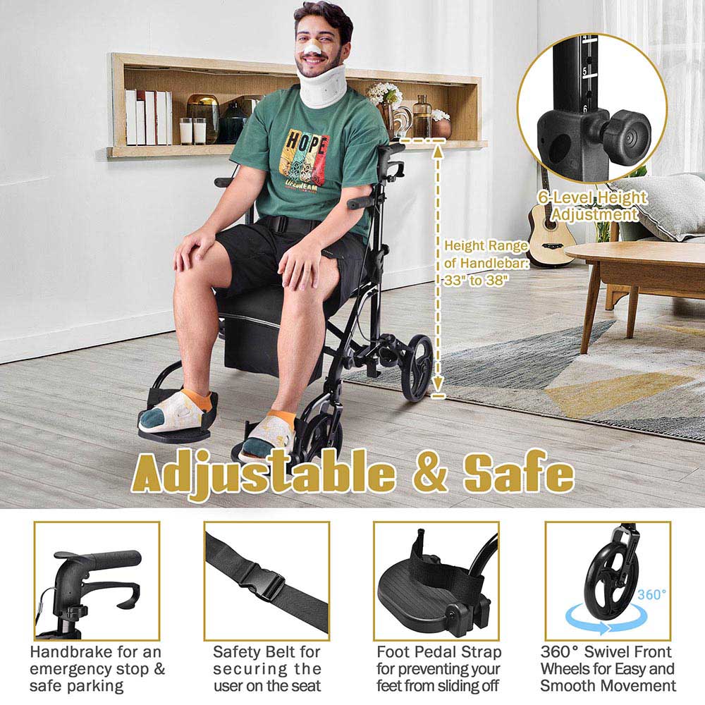 Yescom Roller Walker is designed with 4 flexible wheels to provide you with stability & a convenient. Ideal for people who need extra support, the Rollator Walker allows you to walk more steadily and safely.