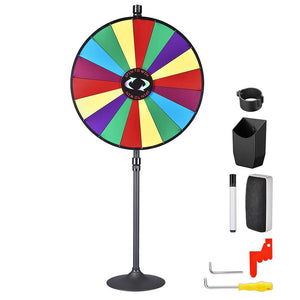 WinSpin 36" Tabletop Floor Stand Prize Wheel has a multi-color template with 18 customizable slots to write down anything you want to draw attraction. Also, it can be placed on the tabletop or stand on the floor, making it possible to be used in trade shows, carnivals, parties, supermarkets, etc.
