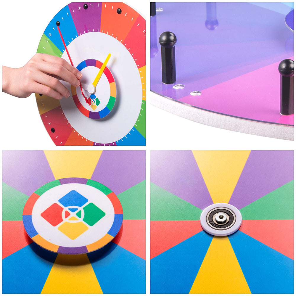 All In 1 Colorful WinSpin 12" Tabletop Prize Wheel can be used in many ways through one Prize Wheel, which is very suitable for teaching. It is light and easy to carry, an ideal teaching aid. Enliven the classroom and end the classroom by playing roulette with prizes. It's great for teachers in early education center, elementary school, kindergarten, also great for home teaching to improve interaction with your kids.