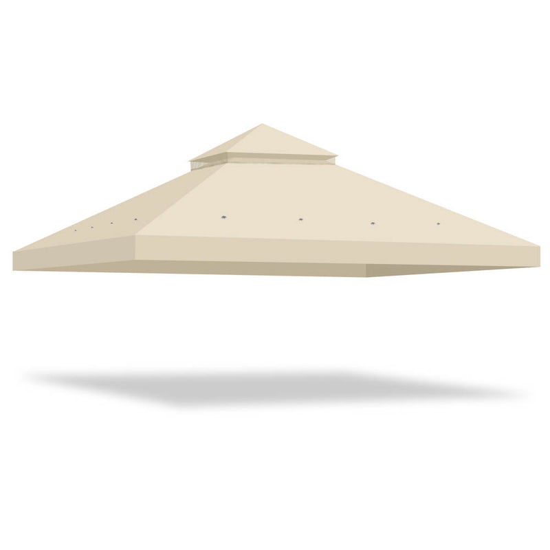10x10 ft Dual-tier Gazebo Replacement Canopy Top features good UV protection, air permeable holes, reinforced corners and easy installation, perfect for helping you enjoy outdoor living space on hot days with full shade.